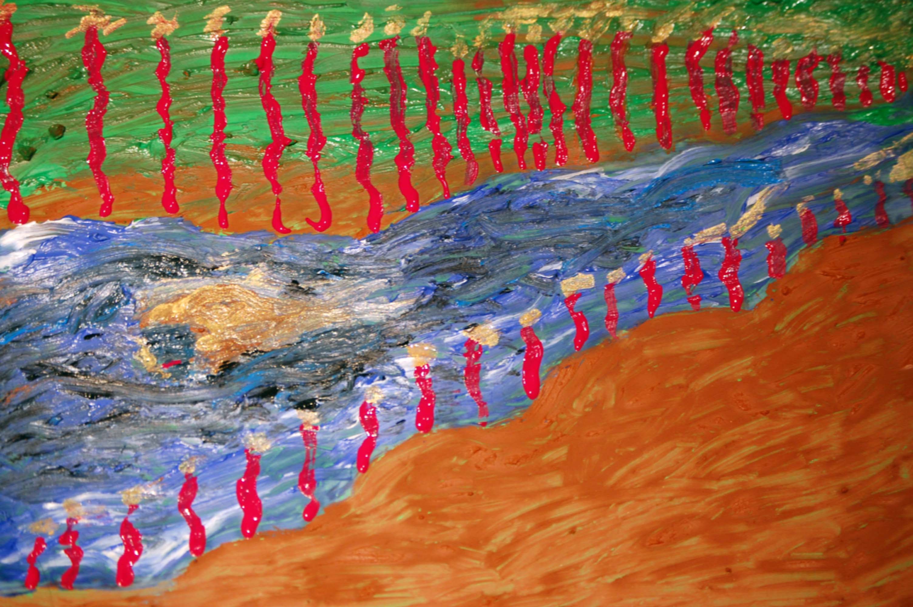 Un día, el chico acudió al río con una mochila y un saco de dormir. Había decidido que era el momento. El río estaba tan contento que las aguas avanzaban torrenciales, brincando, contentas, y no eran ya susurro sino un estallido de espuma y júbilo. Y con tanto alboroto, el chico, al asomarse, no pudo ver su reflejo, sino un conjunto extraño de colores y formas. Y como no sabía quién era, sólo por los reflejos, se sintió perdido. Se desnudaba angustiado y se bañaba con frío y miedo, y sus ojos no brillaban. Porque aunque su pueblo no le gustara, era su pueblo, y echaba de menos su cama, pisar los caminos polvorientos. Y el haber llegado allí con mochila, con intención de quedarse, para descubrirse igual de perdido que siempre, hizo que de pronto el río le resultara extraño y hostil.